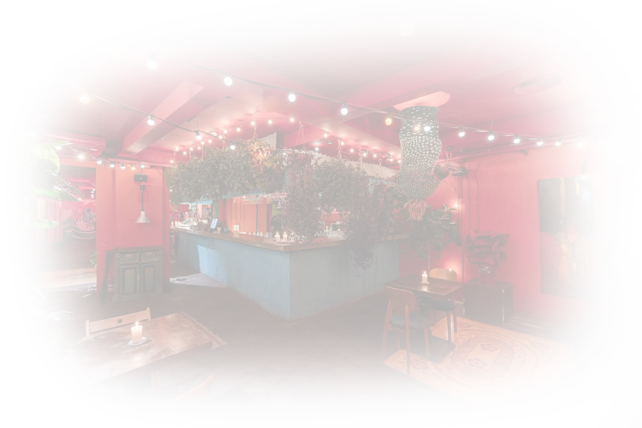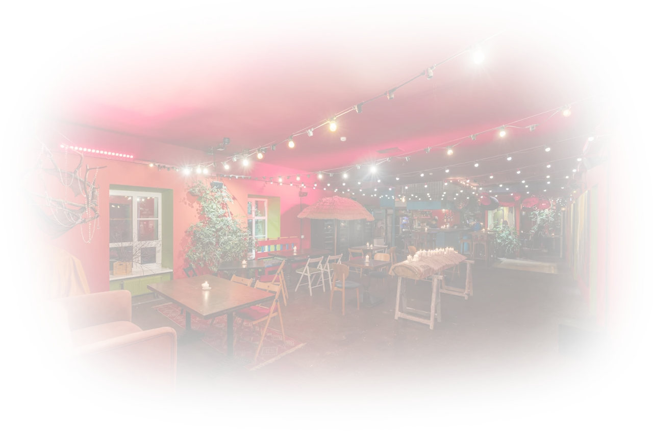 Ресторан, расположенный в историческом особняке XIX века на улице Покровка, 28с3, в Москве. Интерьер заведения сочетает элементы лофта с яркими картинами, узорчатыми коврами и винтажными деталями, создавая эклектичную и уютную атмосферу.